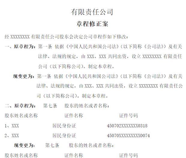 到工商局调取公司最新一次的公司章程,可以有两种选择:一种是对公司章程进行修改编制章程修正案;另一种是原章程作废,重新编制新章程。这里建议在公司变动不多的情况下编制章程修正案即可。